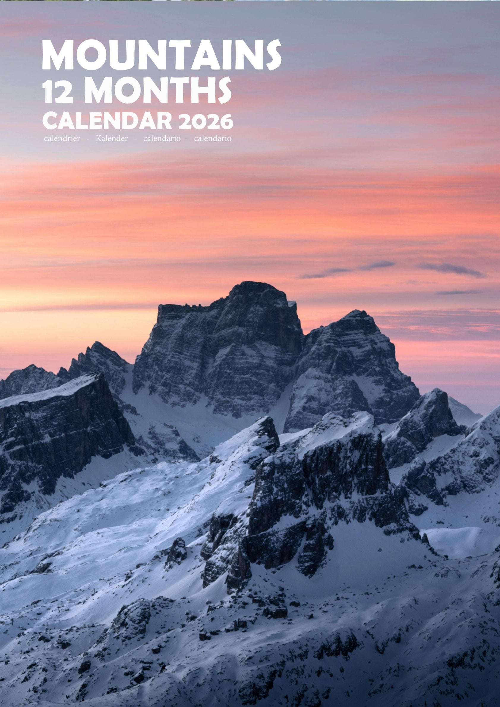 Celebrate the majesty of towering peaks with the Mountains Calendar 2026. This calendar brings together 12 breathtaking images of mountain ranges from across the globe—snow-capped summits, misty valleys, rugged cliffs, and serene alpine views. Each month transports you to new heights of natural beauty.