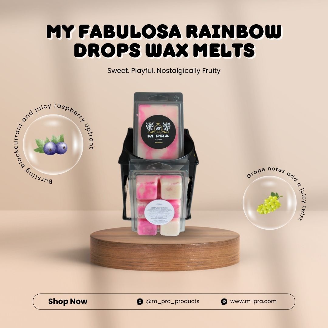 Description of our Hand-Made "My Fabulosa Rainbow Drops" Scented Wax Melts: