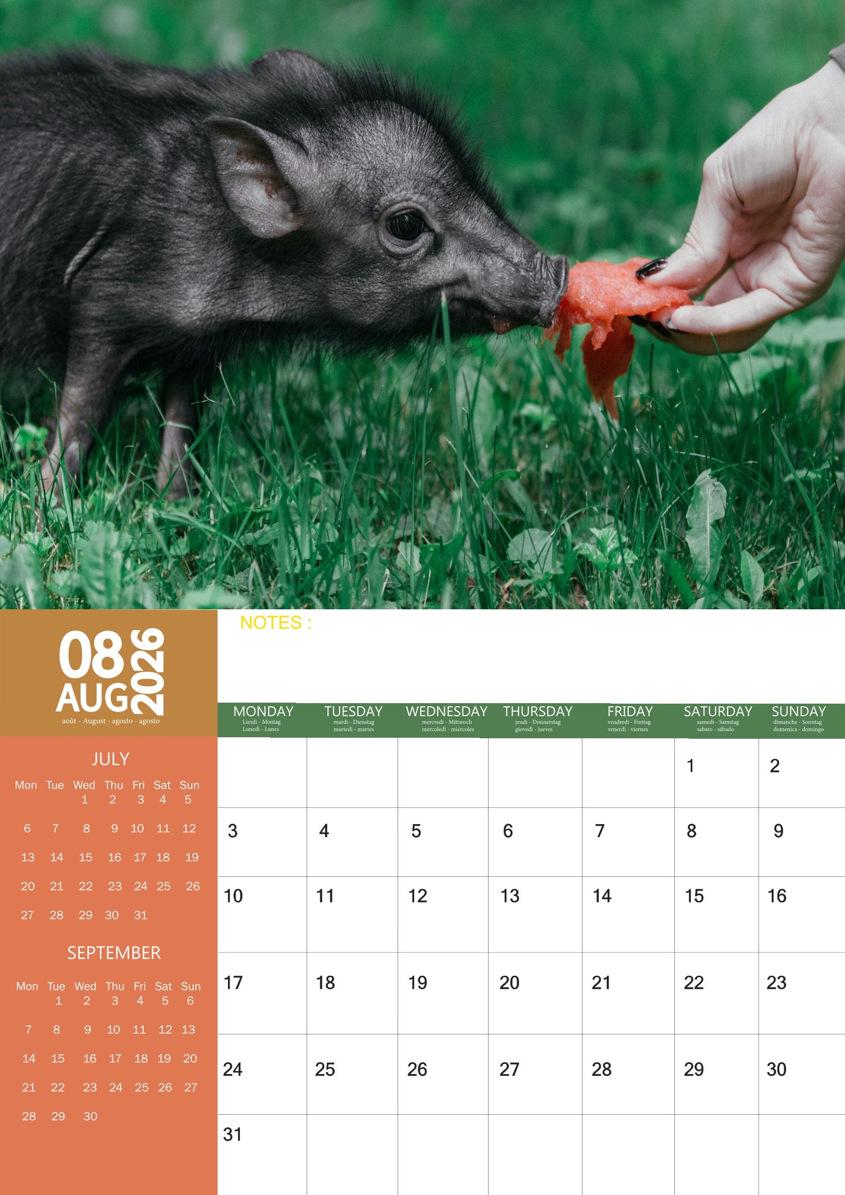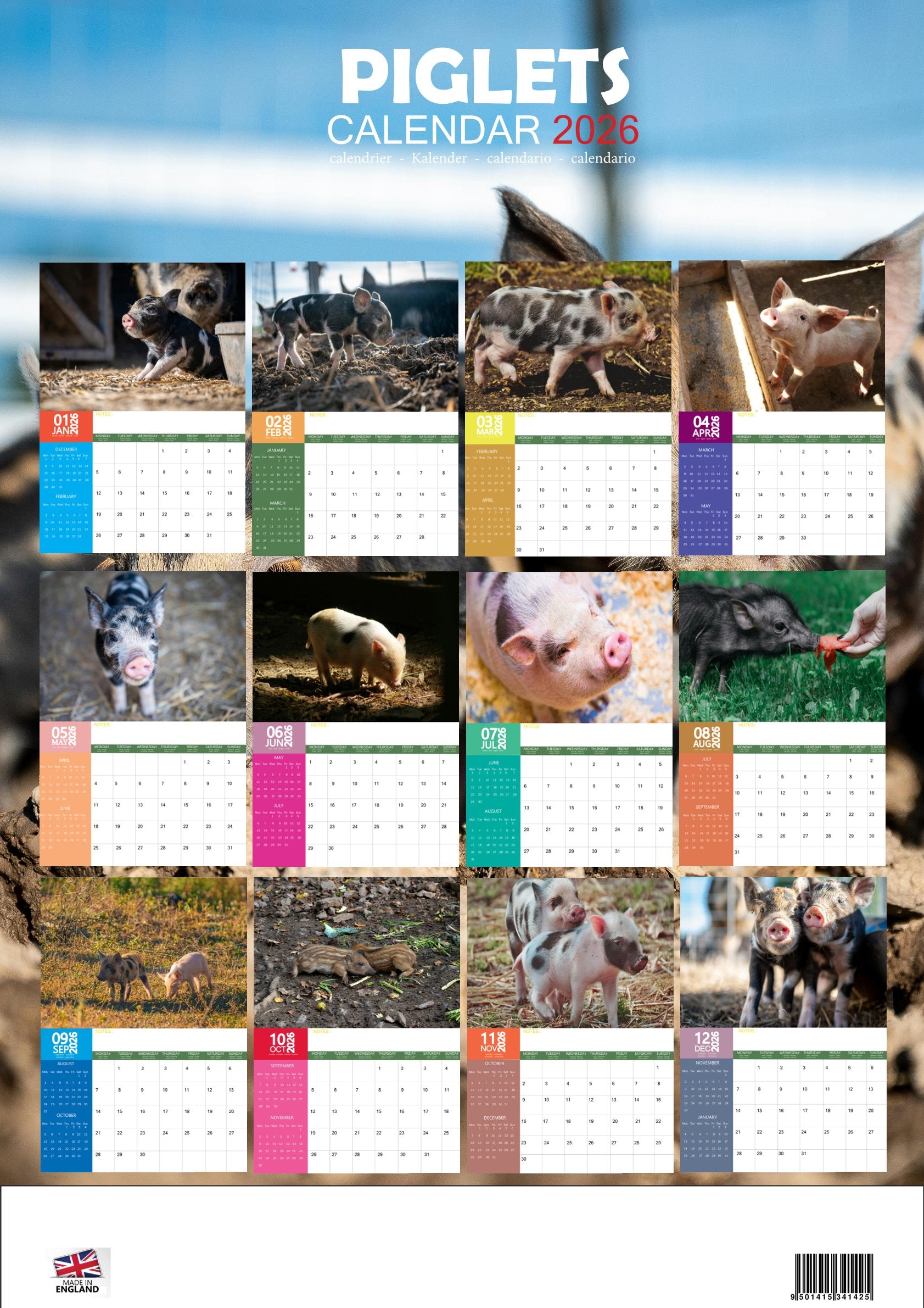The Piglets Calendar 2026 is guaranteed to brighten your days with its irresistible cuteness. Perfect for pig lovers or anyone who enjoys a touch of farmyard charm, this calendar is both practical and full of joy.