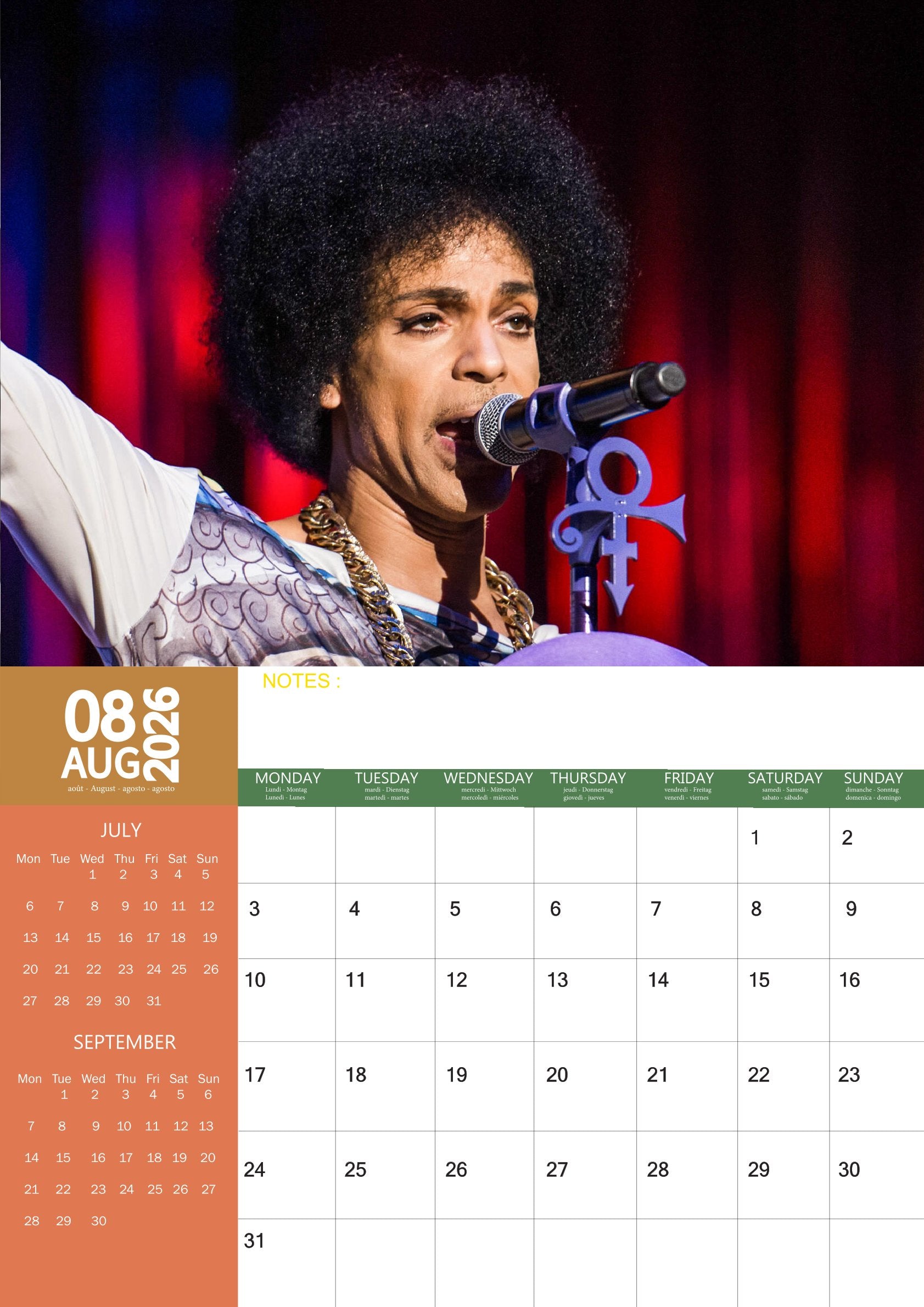 The Prince Calendar 2026 is more than just a calendar—it’s a tribute to a music genius who revolutionised sound, performance, and style. With vibrant images and practical monthly layouts, it’s the perfect way to honour Prince’s artistry throughout the year.