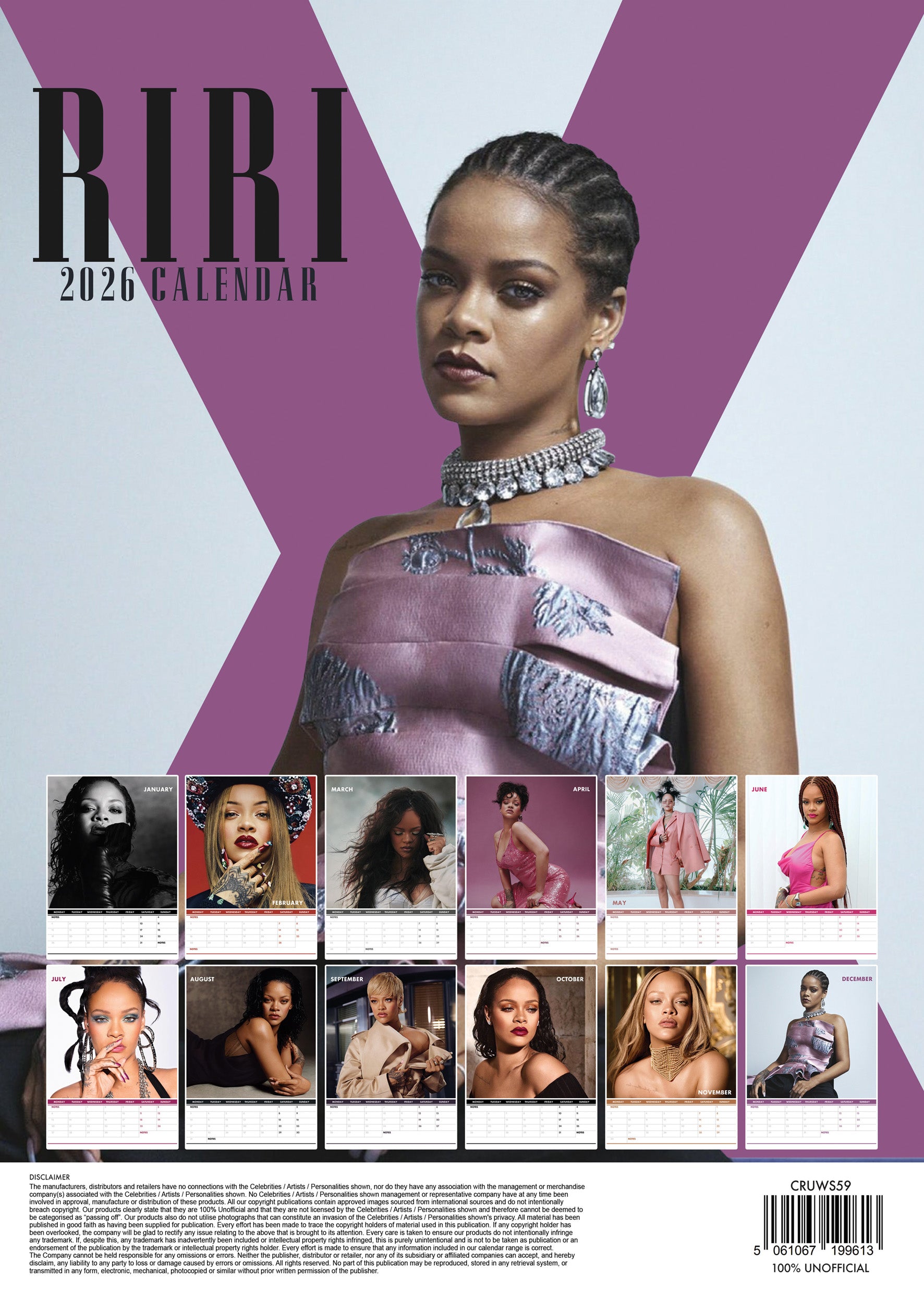 Celebrate 2026 in style with the Rihanna Calendar 2026, featuring 12 striking, high-resolution images of the global music, fashion, and beauty mogul. From red carpet glam to fierce fashion shoots, this A3 wall calendar captures Rihanna's legendary presence and unstoppable energy month after month.