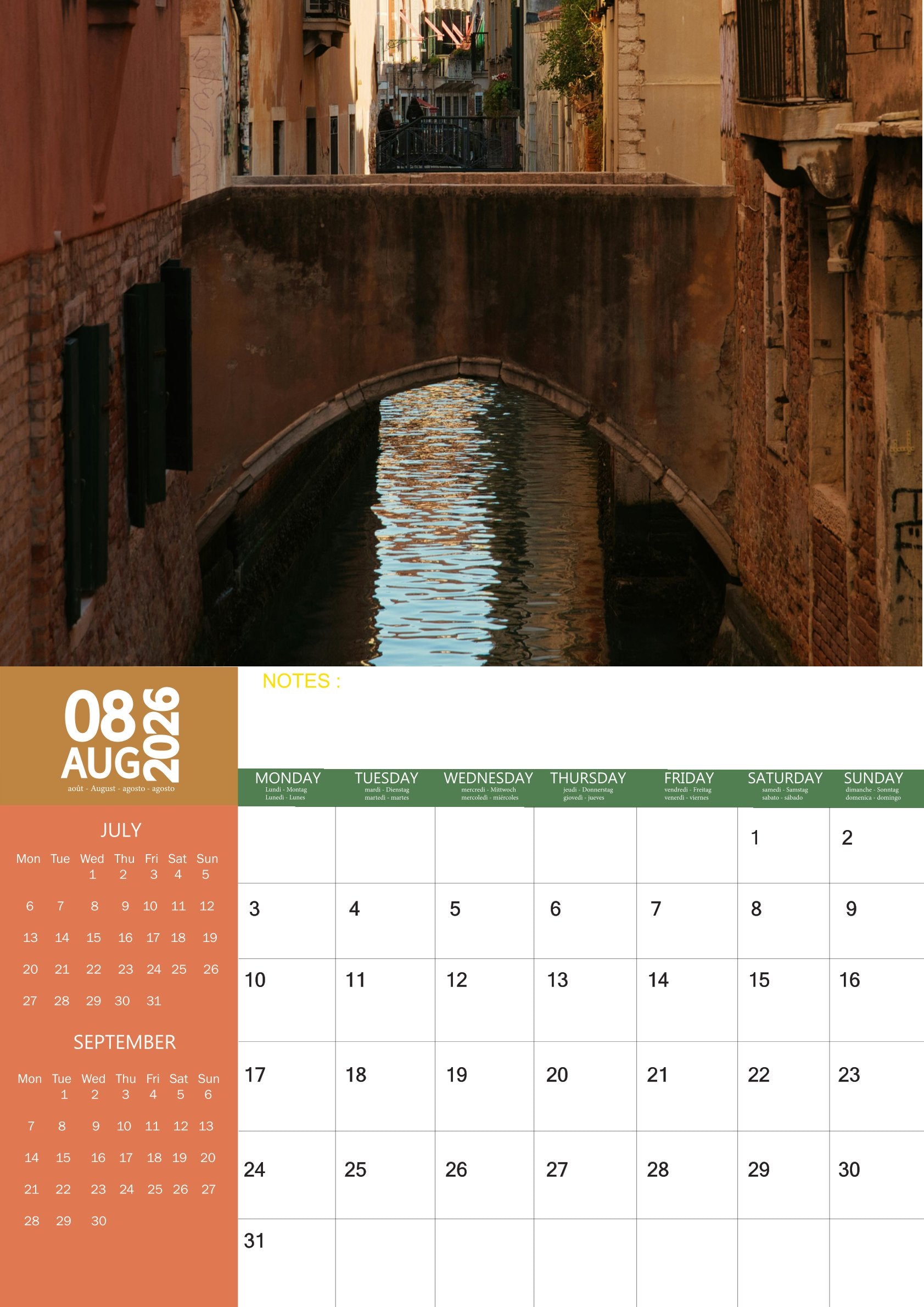 The Romantic Europe Calendar 2026 is more than just a way to stay organised—it’s a year-long tribute to love in all its forms. With elegant photography and a practical design, it adds warmth, inspiration, and a touch of romance to your home or office.