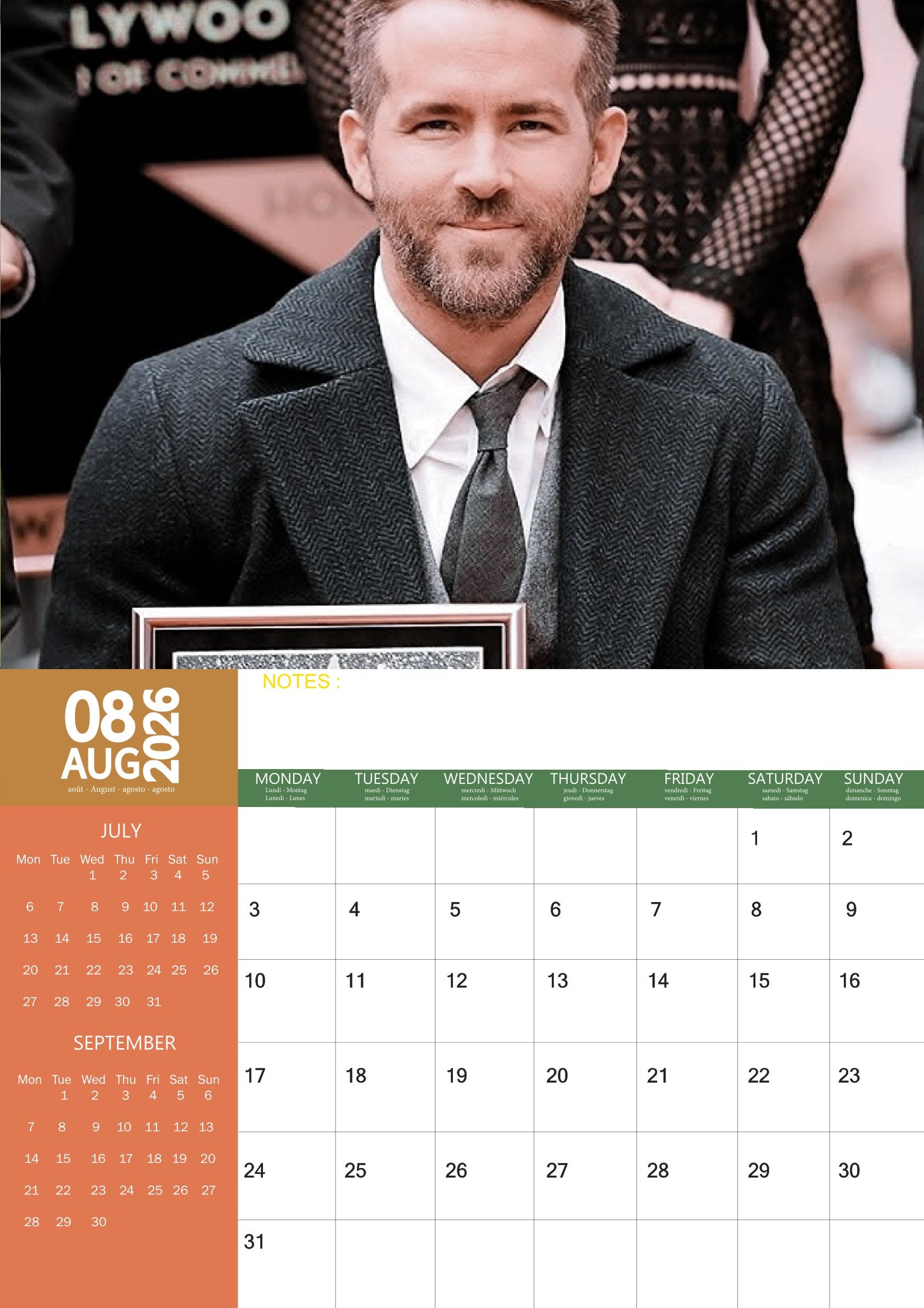 The Ryan Reynolds Calendar 2026 is more than just a way to keep organised—it’s a year-long celebration of one of Hollywood’s most loved actors. With striking photography and a practical layout, it adds humour, charm, and star power to your everyday routine.