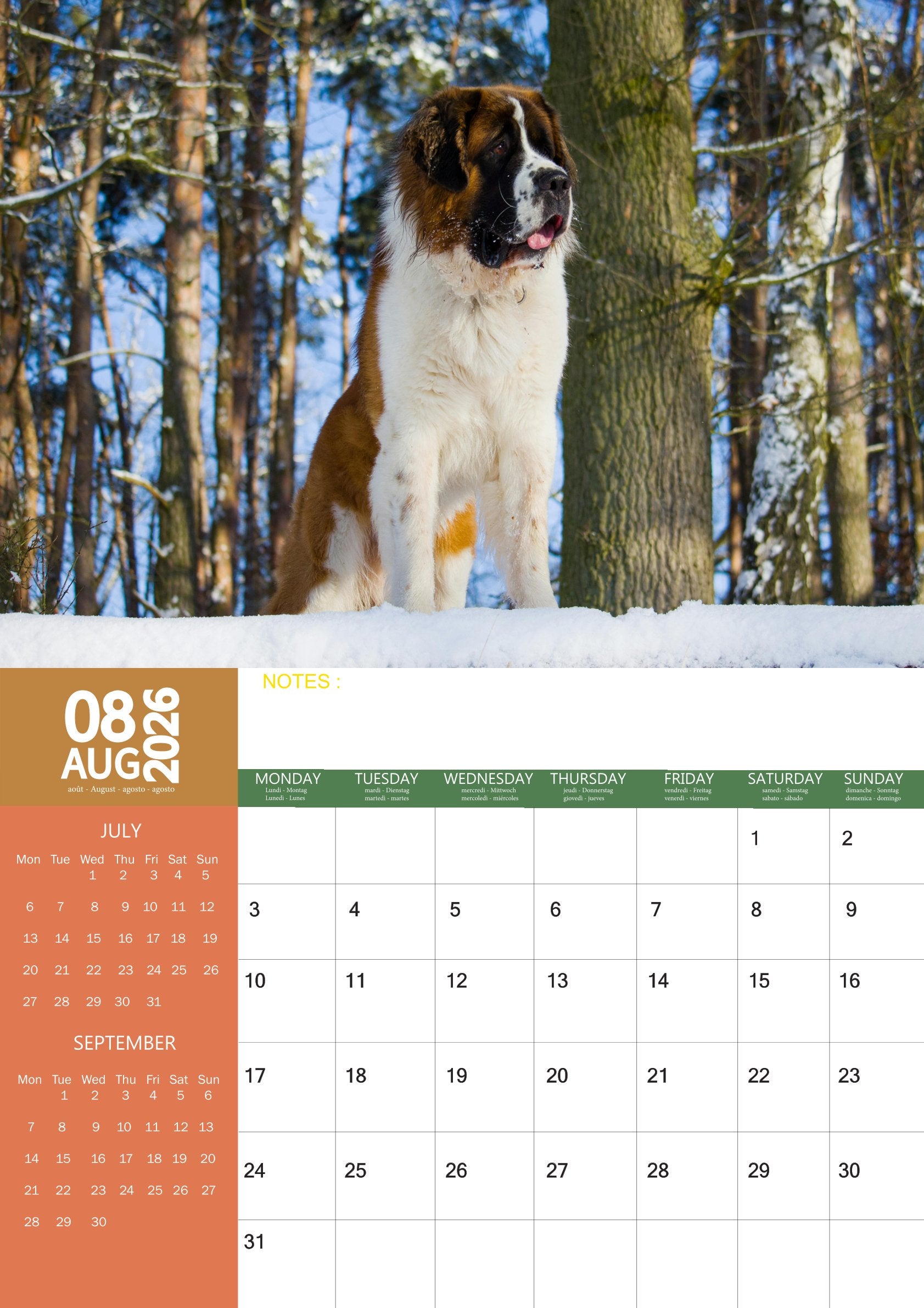 The Saint Bernard Calendar 2026 is more than just a way to keep track of dates—it’s a celebration of one of the most iconic and lovable giant breeds. With stunning photography and a practical design, it’s a heartwarming addition to any home or office.
