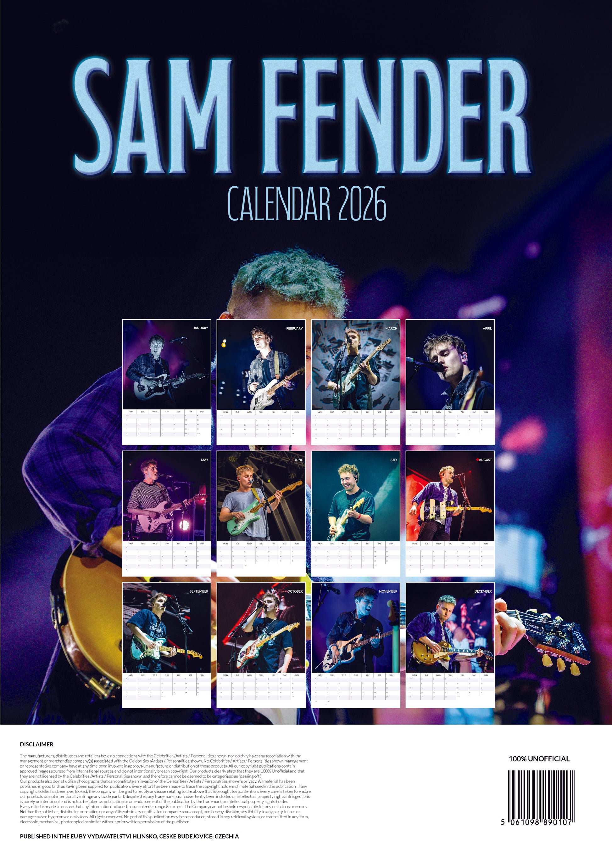 Celebrate a year of raw talent, indie anthems, and unforgettable performances with the Sam Fender Calendar 2026. Featuring electrifying images of one of the UK’s most compelling rock voices, this calendar is a must-have for every true fan. From sold-out arena shots to intimate moments on stage, each month captures Sam Fender’s charisma and grit in full glory.