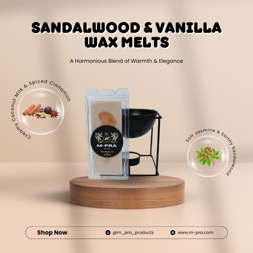 Description of our Hand-Made "Sandalwood & Vanilla" Scented Wax Melts: