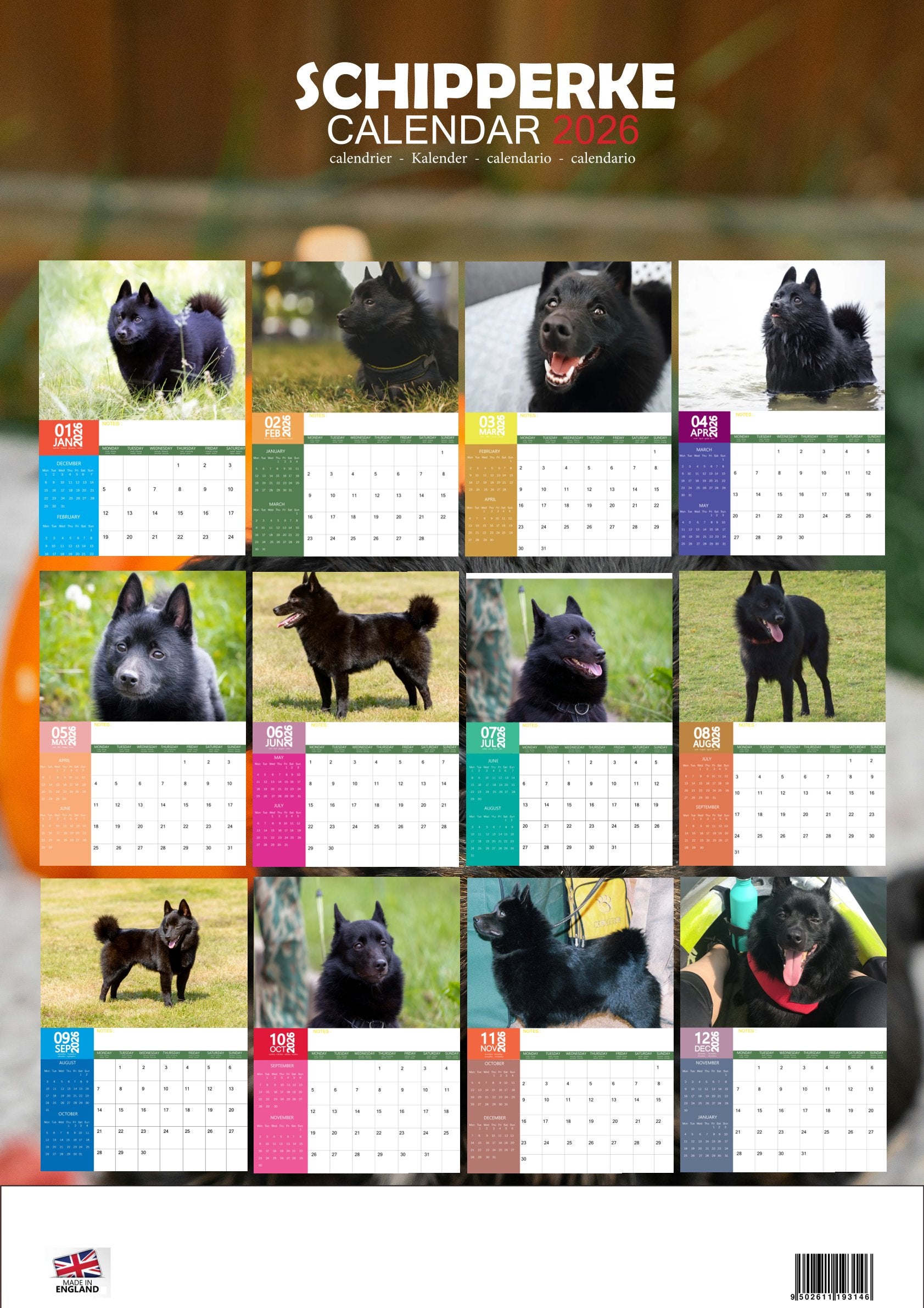 Celebrate the year with the spirited personality and fox-like charm of the Schipperke Calendar 2026. Featuring 12 beautifully captured images, this calendar showcases the breed’s playful energy, glossy black coat, and loyal temperament. Perfect for admirers of this unique Belgian breed, it brings joy and elegance to every month of the year.