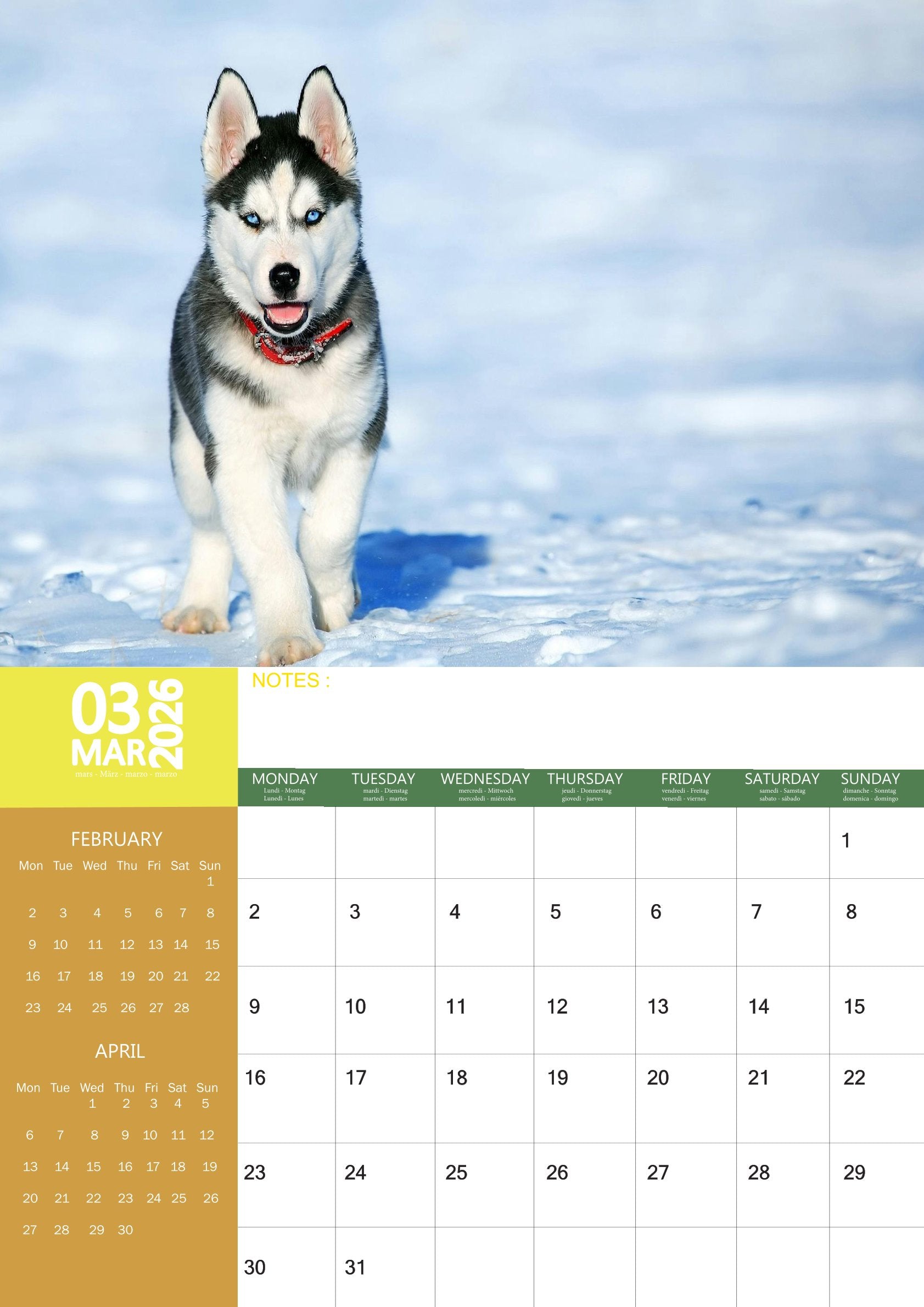 Siberian Husky Dog Calendar 2026 – M-PRA Range