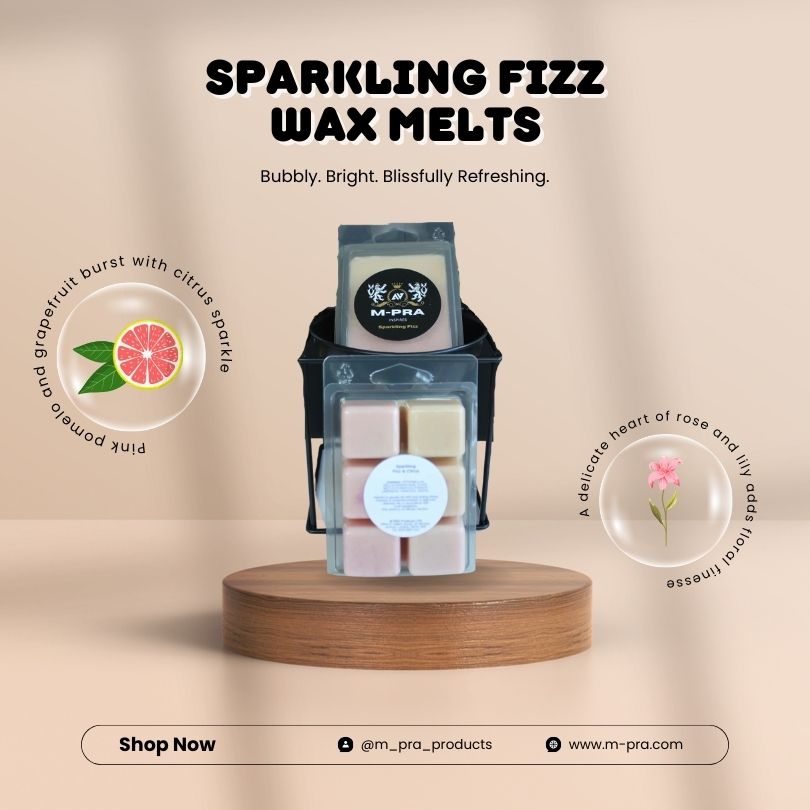 Our Sparkling Fizz and Citrus Wax Melt scent will remind you of the delightful scent of a newly opened bottle of chilled pink champagne. Packed full of the rich scents of Pink Pomelo and Grapefruit with background hints of rose, lily, and musks. Our Sparkling Fizz and Citrus Fragrance Wax Melt will uplift you with its crisp clean scent.