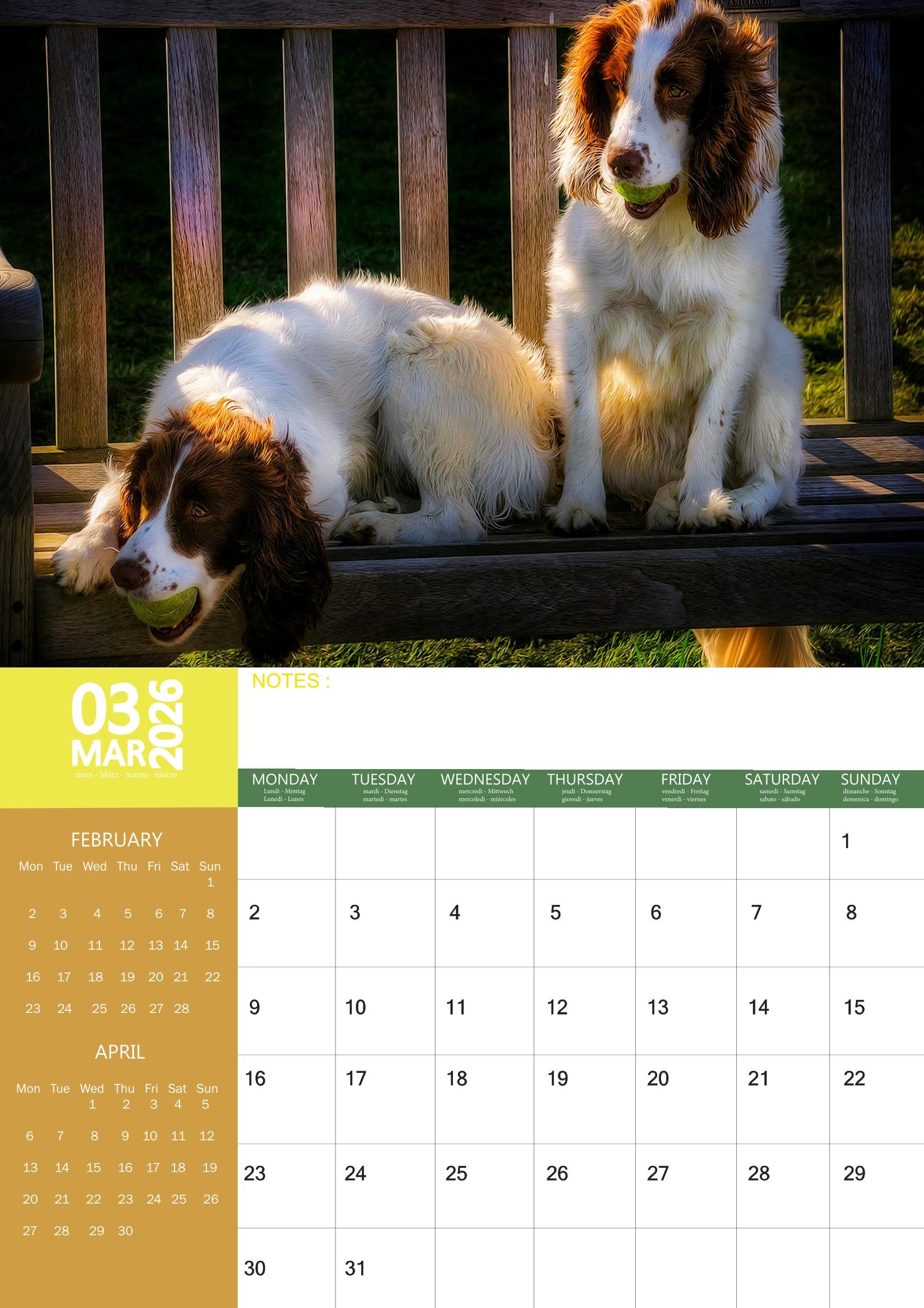 Springer Spaniel Dog Calendar 2026 – M-PRA Range