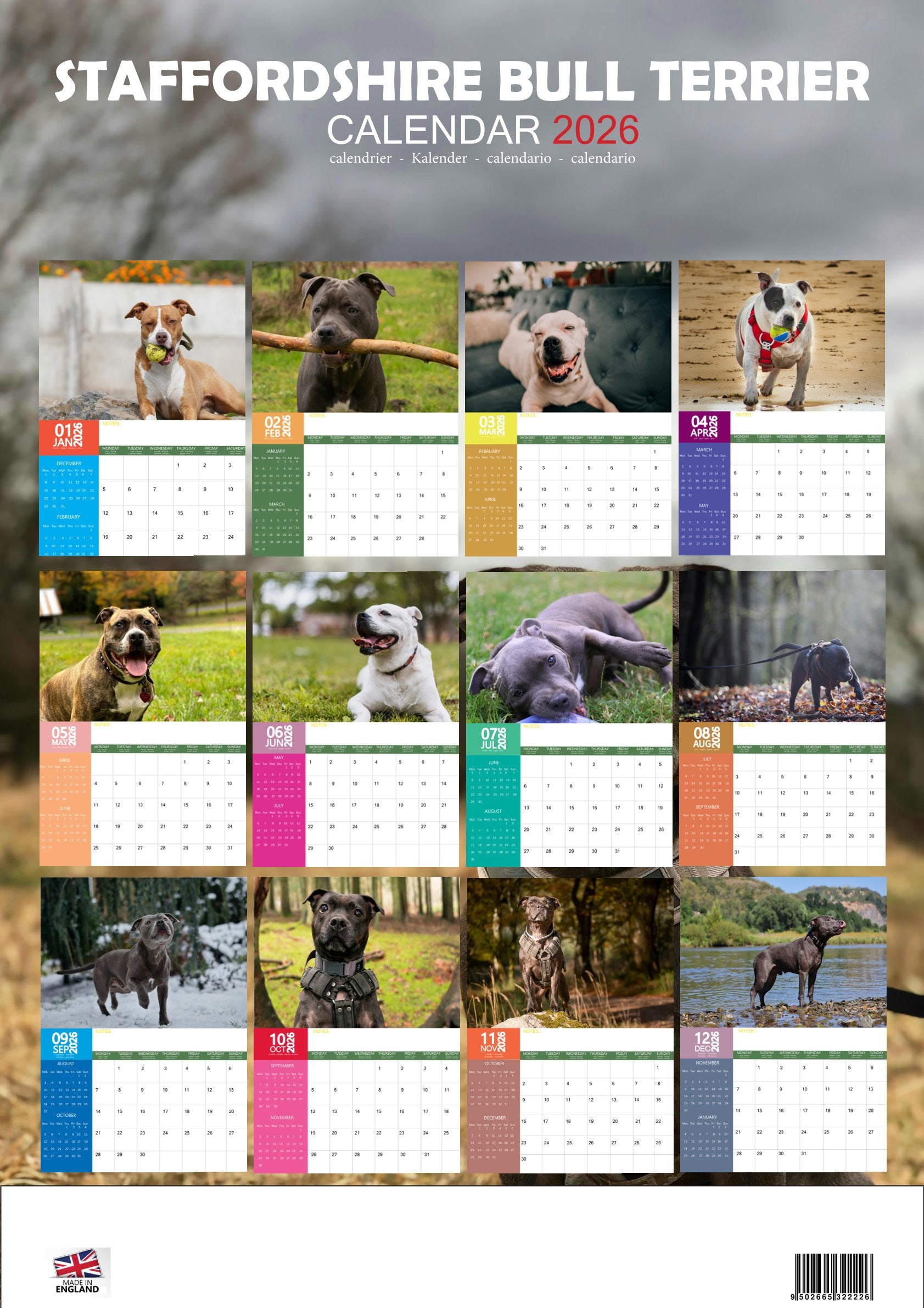 Staffordshire Bull Terrier Dog Calendar 2026 – M-PRA Range