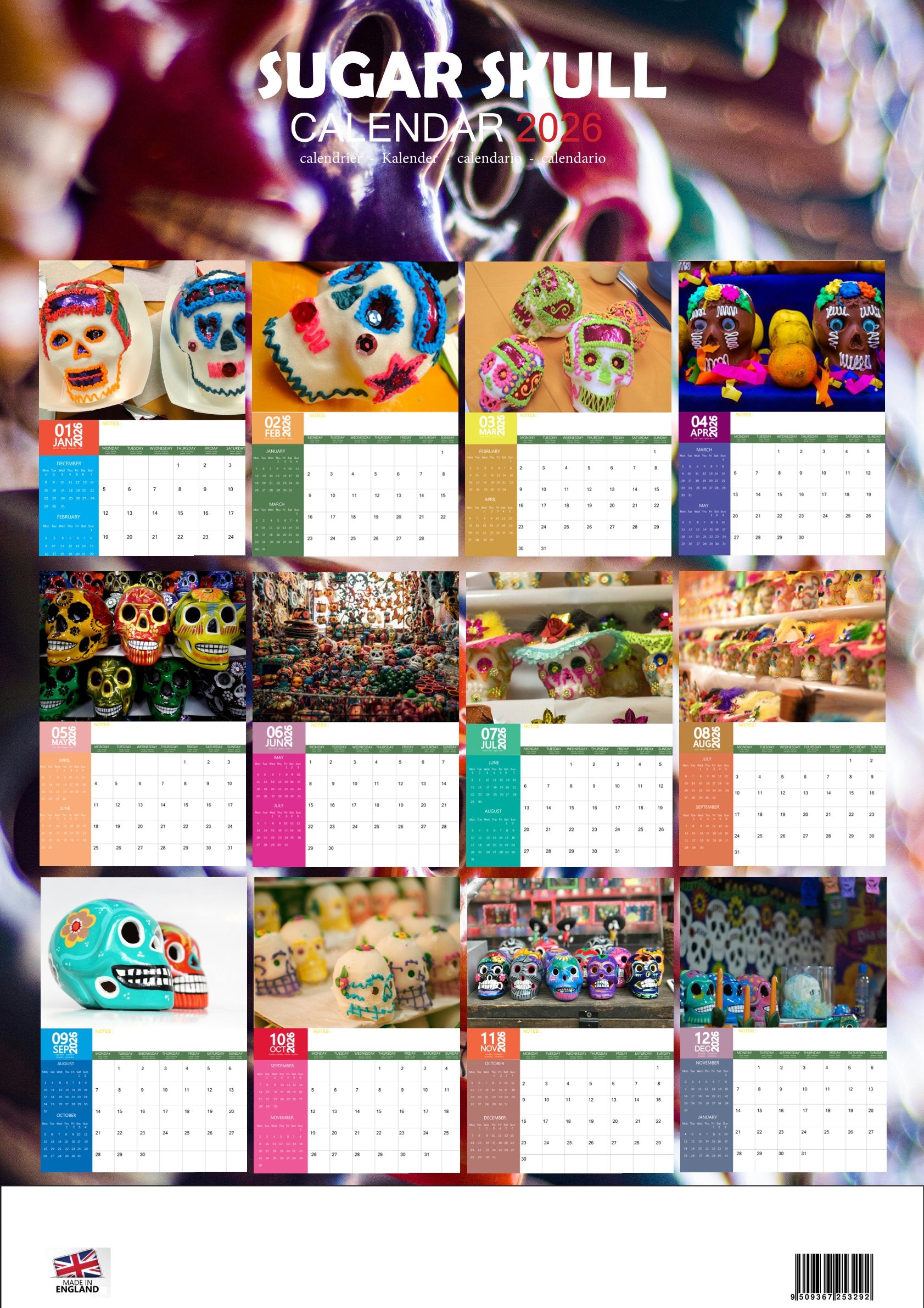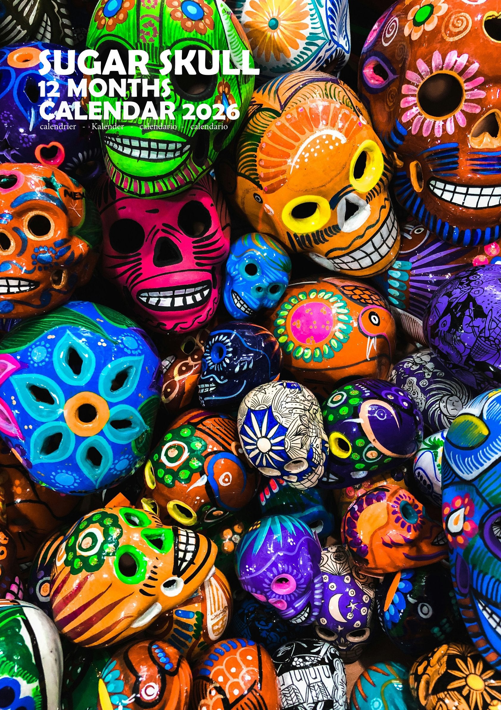 Celebrate vibrant tradition and artistry with the Sugar Skull Calendar 2026. Featuring 12 stunning images inspired by Día de los Muertos, this calendar showcases colourful sugar skull designs that blend culture, symbolism, and creativity. Each month is alive with bold patterns, intricate details, and vivid hues that honour this iconic art form.