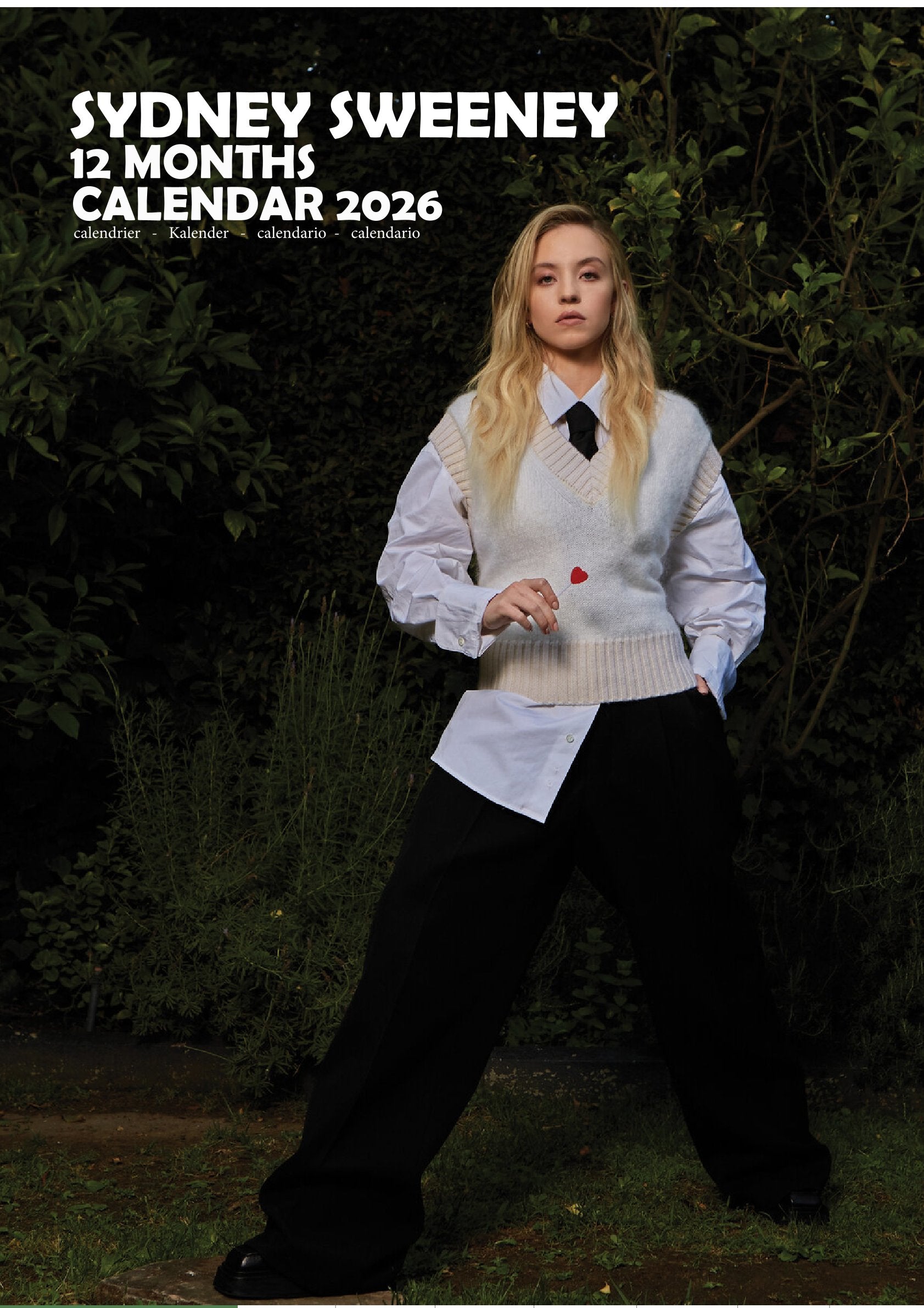 Celebrate the beauty, talent, and rising star power of one of Hollywood’s most talked-about actresses with the Sydney Sweeney Calendar 2026. Featuring 12 glamorous images, this calendar captures Sydney’s striking red-carpet looks, captivating photoshoots, and natural charm. Each month brings her elegance and star presence to your wall.