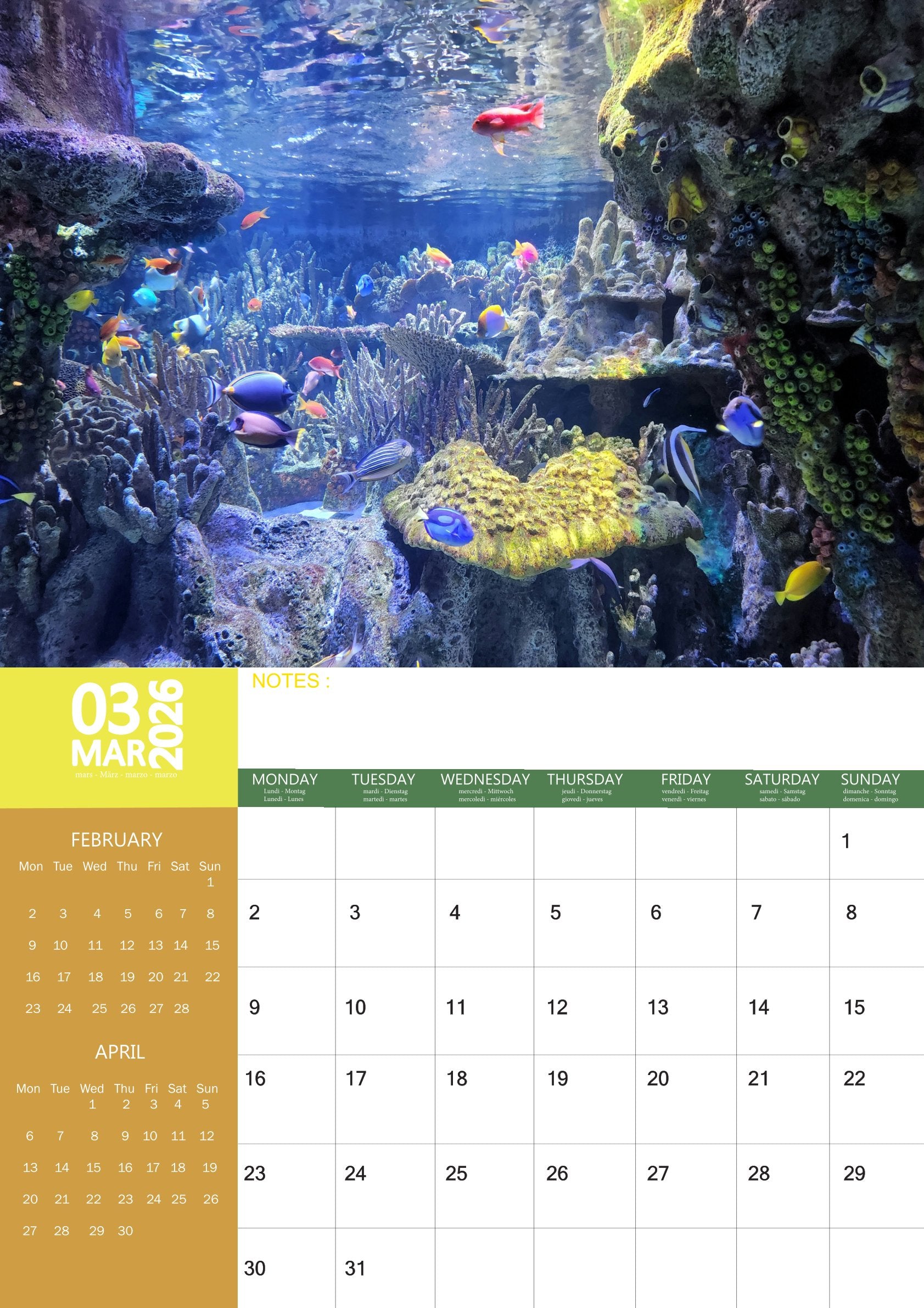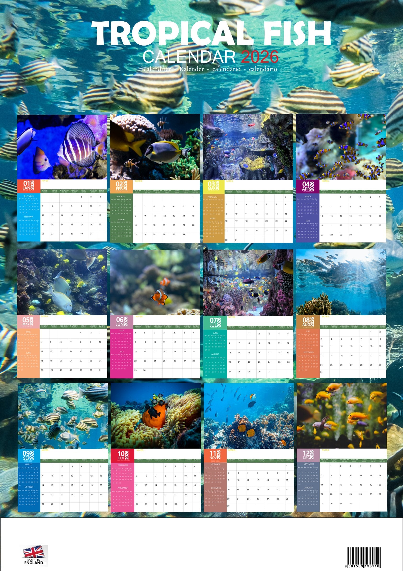 Dive into a world of vibrant underwater beauty with the Tropical Fish Calendar 2026. Showcasing 12 stunning images of colourful fish from coral reefs around the globe, this calendar brings exotic marine life into your home all year long.