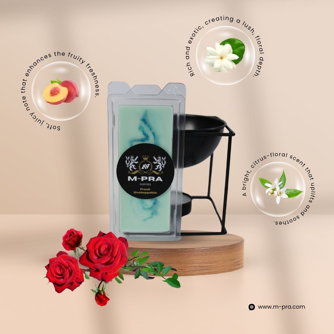 Experience the invigorating scent of our hand-made Unstoppable Fresh Wax Melts. This delightful fragrance blends the bright and uplifting notes of citrus orange, crisp green apple, and juicy peach with elegant floral undertones of rose, neroli, and jasmine. Hints of vanilla and patchouli round out this fragrance, creating a truly refreshing and vibrant aroma that fills your space with positivity and energy.