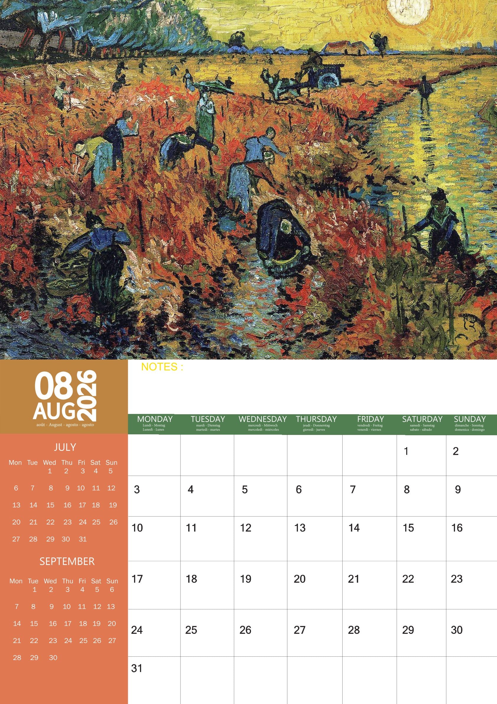 The Van Gogh Calendar 2026 is more than a planner—it’s a year-long gallery of one of the world’s greatest artists. With vibrant reproductions and practical design, it brings colour, culture, and inspiration to your everyday life.