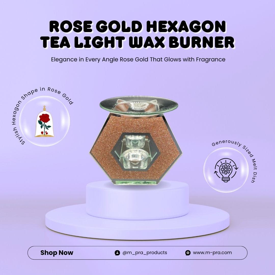 Description of our Rose Gold Hexagon Tea Light Wax Burner: