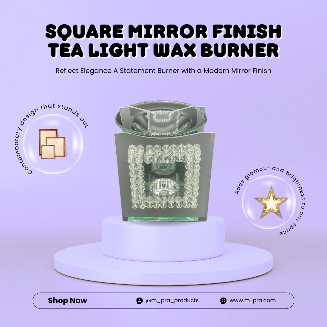 Description of our Square Mirror Finish Tea Light Wax Burner: