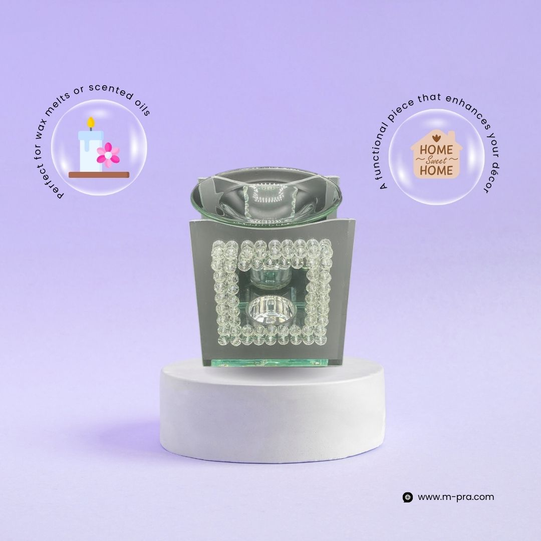 Large Square Mirror Finish Tea Light Wax Burner. This beautifully finished Aroma Lamp has a large dish suitable for wax melts or scented oils.