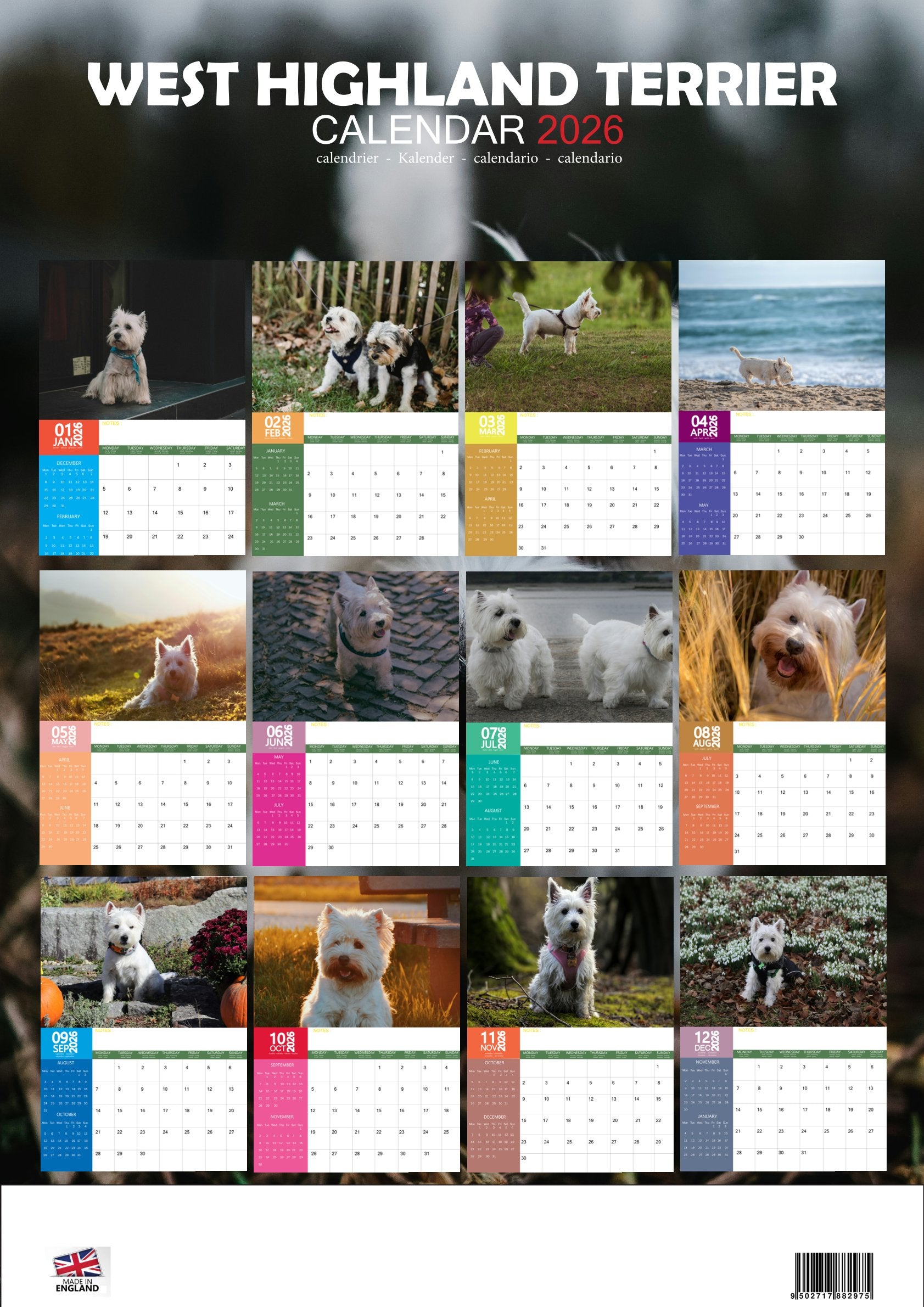 The West Highland Terrier Calendar 2026 is more than just a practical planner—it’s a celebration of one of the UK’s most beloved breeds. With its high-quality photography and functional design, this calendar will keep you smiling and organised throughout the year.