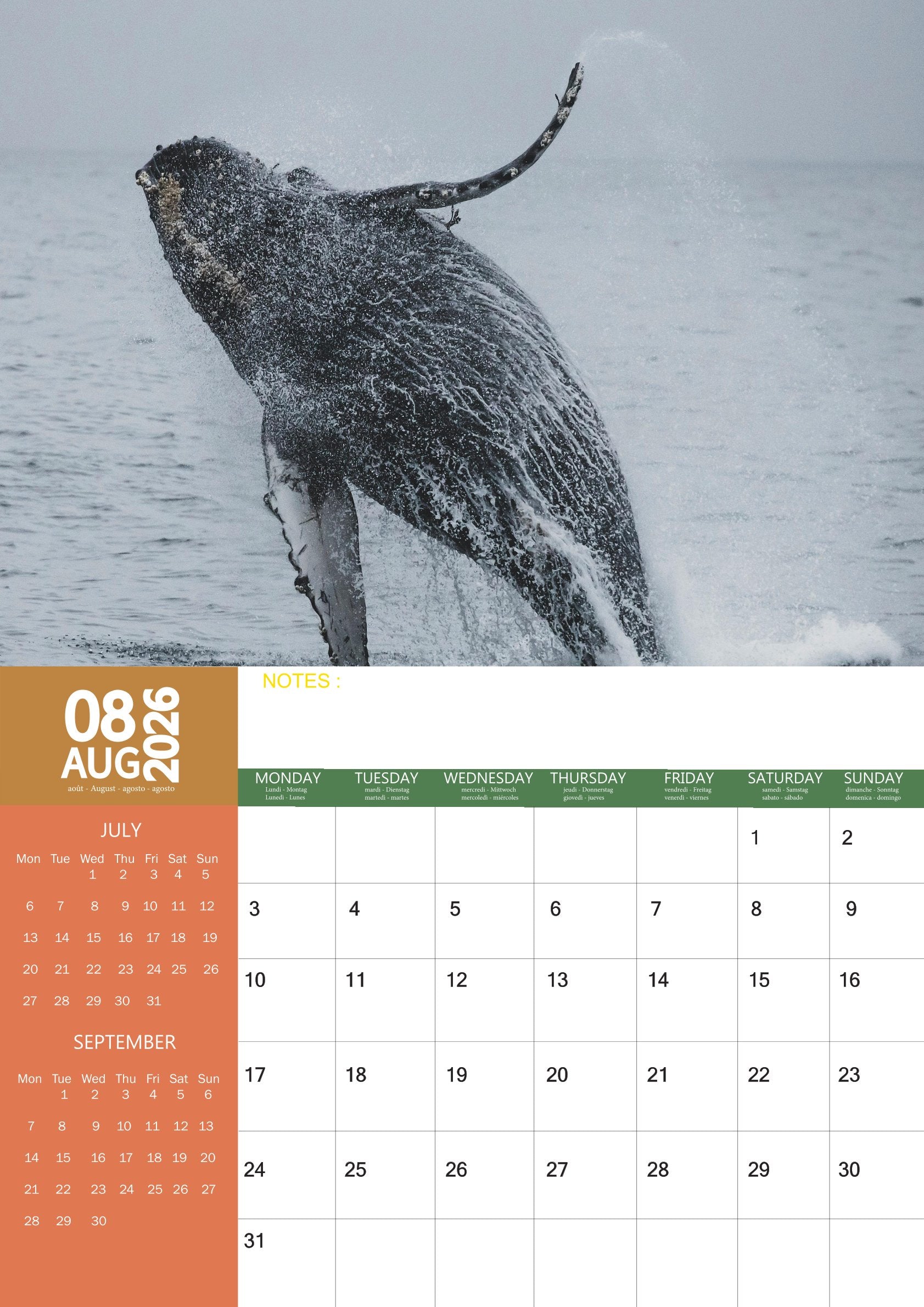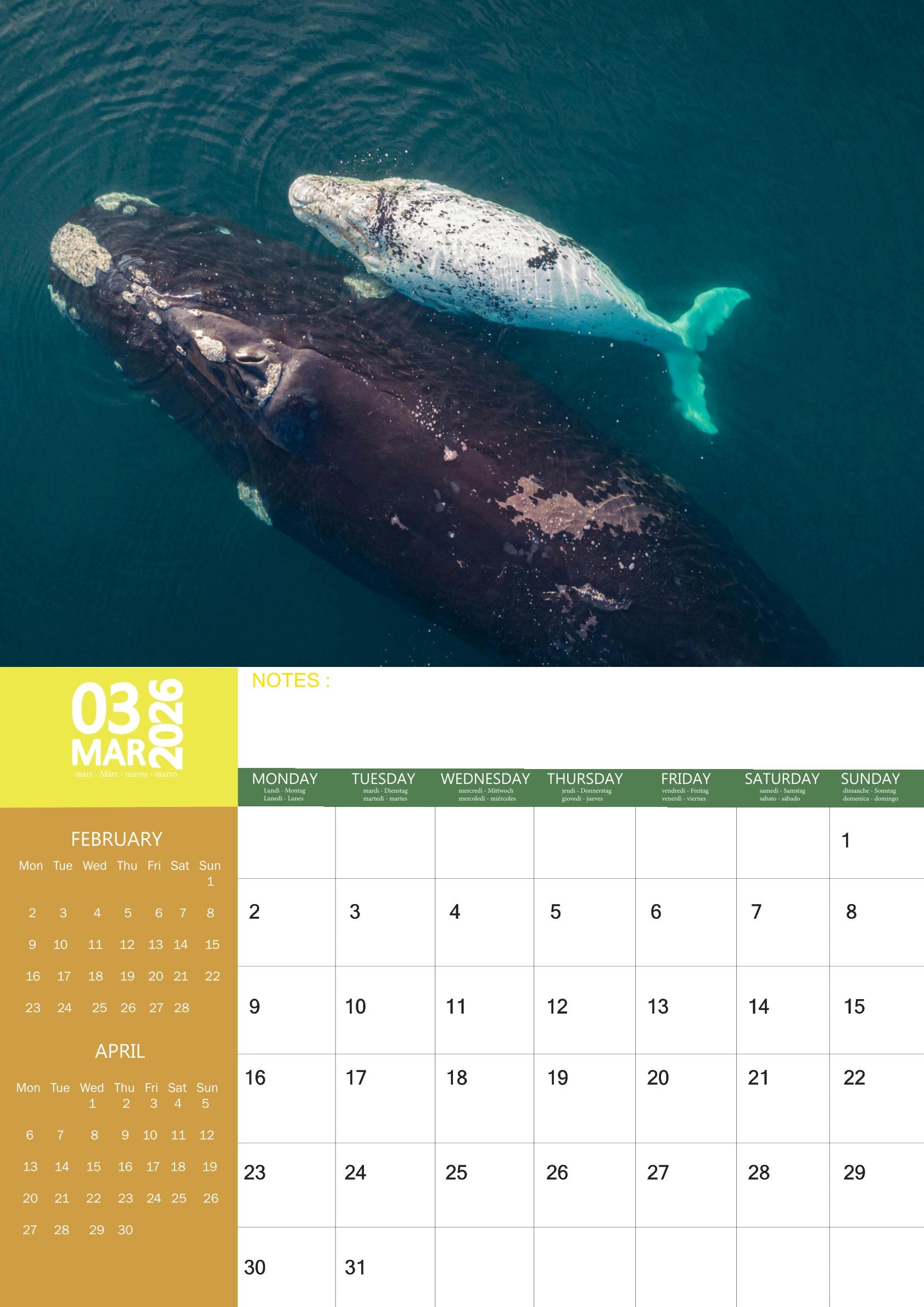 The Whale Calendar 2026 combines functionality with breathtaking imagery, making it a must-have for anyone inspired by the ocean. It brings the power, grace, and mystery of whales into your home while keeping you organised throughout the year.