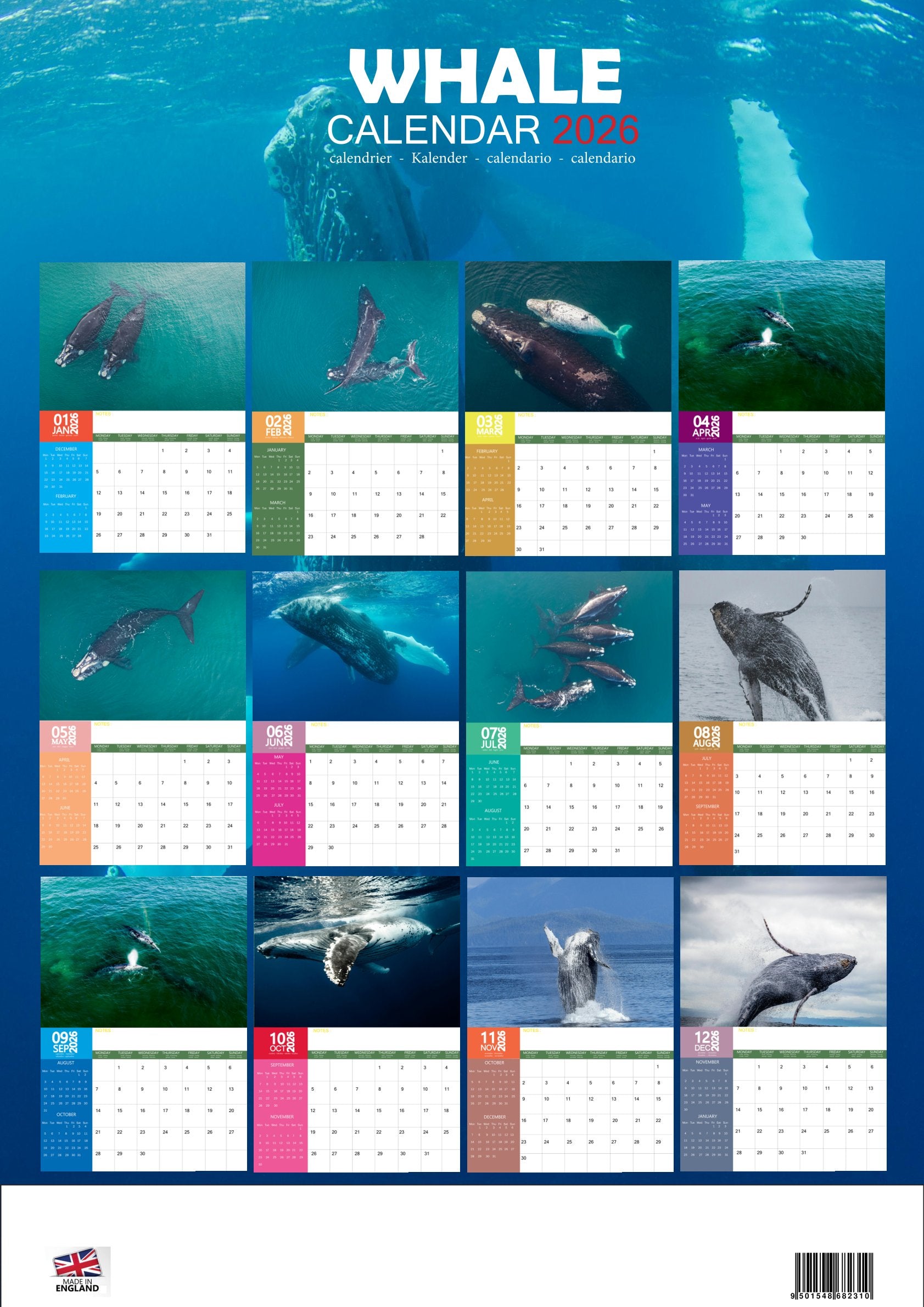 Celebrate the majesty of the ocean’s gentle giants with the Whale Calendar 2026. Featuring 12 breathtaking photographs, this calendar showcases whales in their natural habitat, from powerful breaches to serene underwater glides, capturing the awe-inspiring beauty of these magnificent creatures.