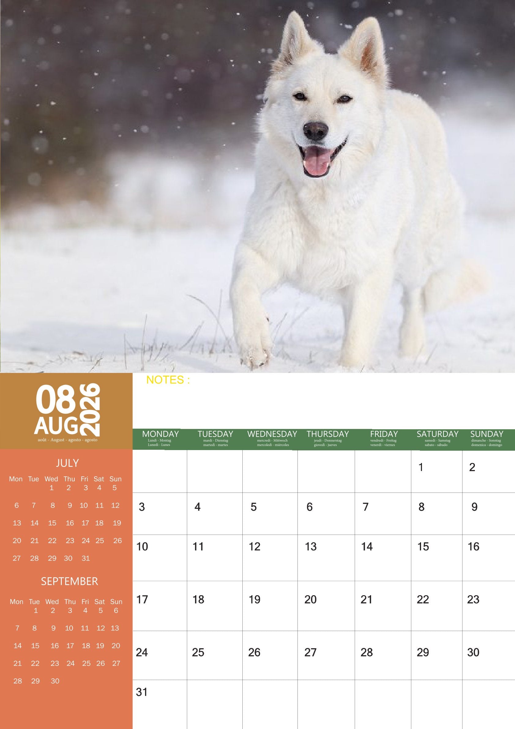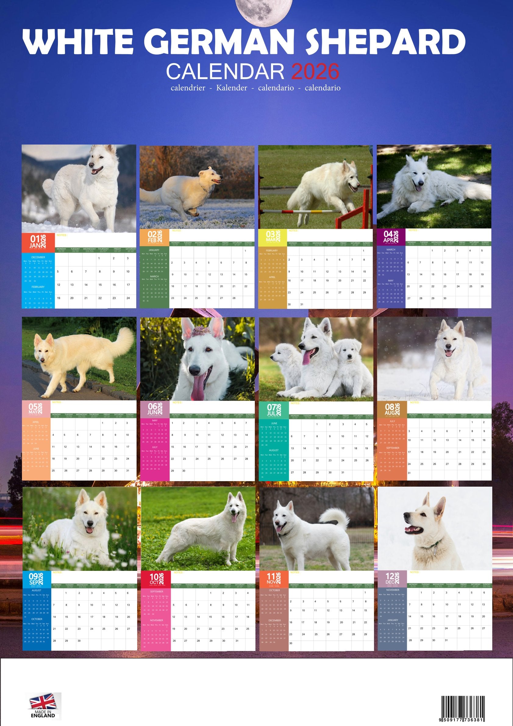 The White German Shepherd Calendar 2026 is more than just a way to track the year—it’s a celebration of one of the most intelligent and devoted dog breeds. With breathtaking images and a practical design, it’s the perfect choice for anyone who admires these loyal and majestic companions.