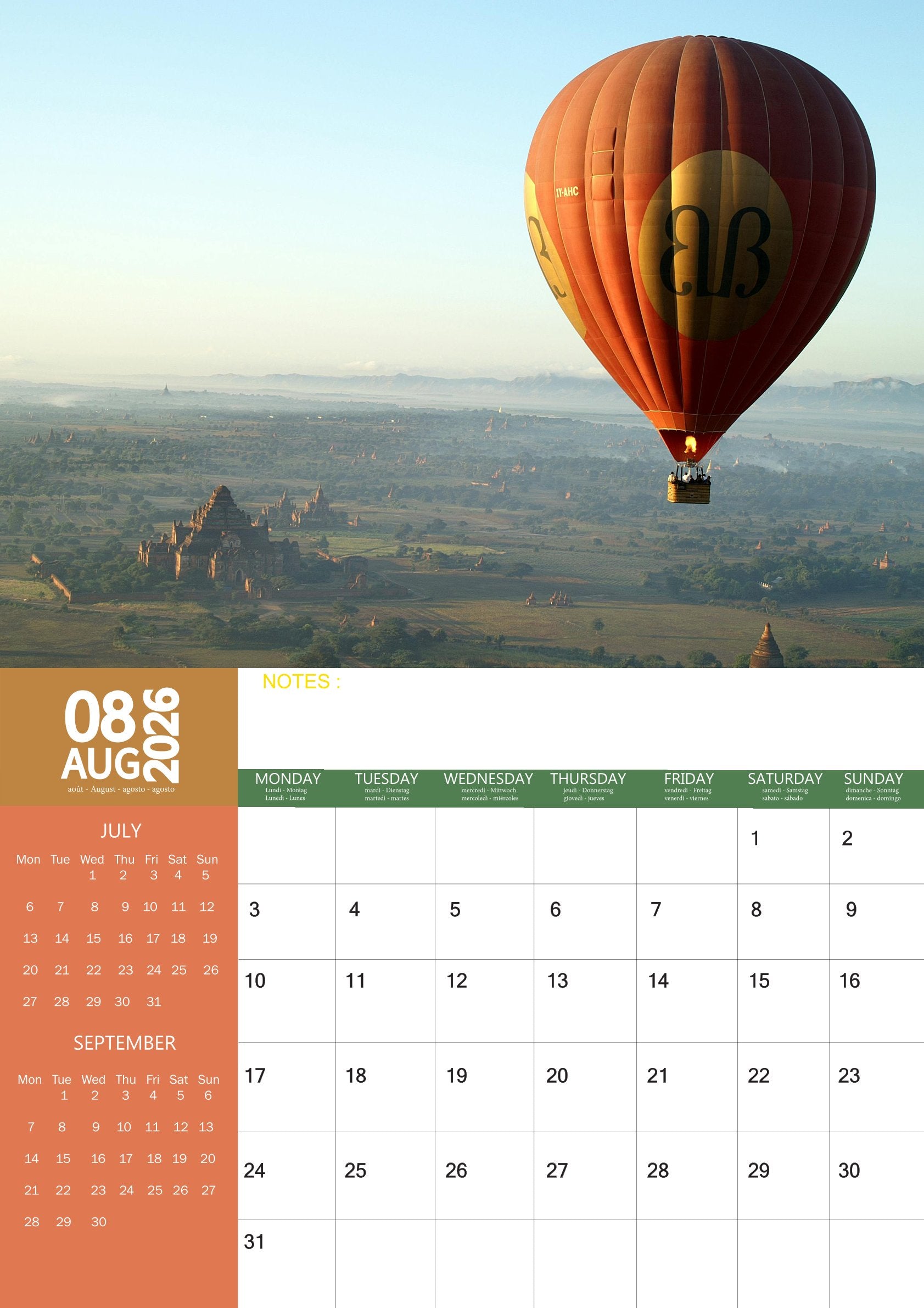 Embark on a journey around the globe with the World Travel Calendar 2026. Featuring 12 breathtaking images from the world’s most iconic destinations, this calendar captures the spirit of adventure and exploration. From the Eiffel Tower in Paris and the Great Wall of China to the pyramids of Egypt, the canals of Venice, and the tropical beaches of the Maldives, each month inspires your wanderlust.