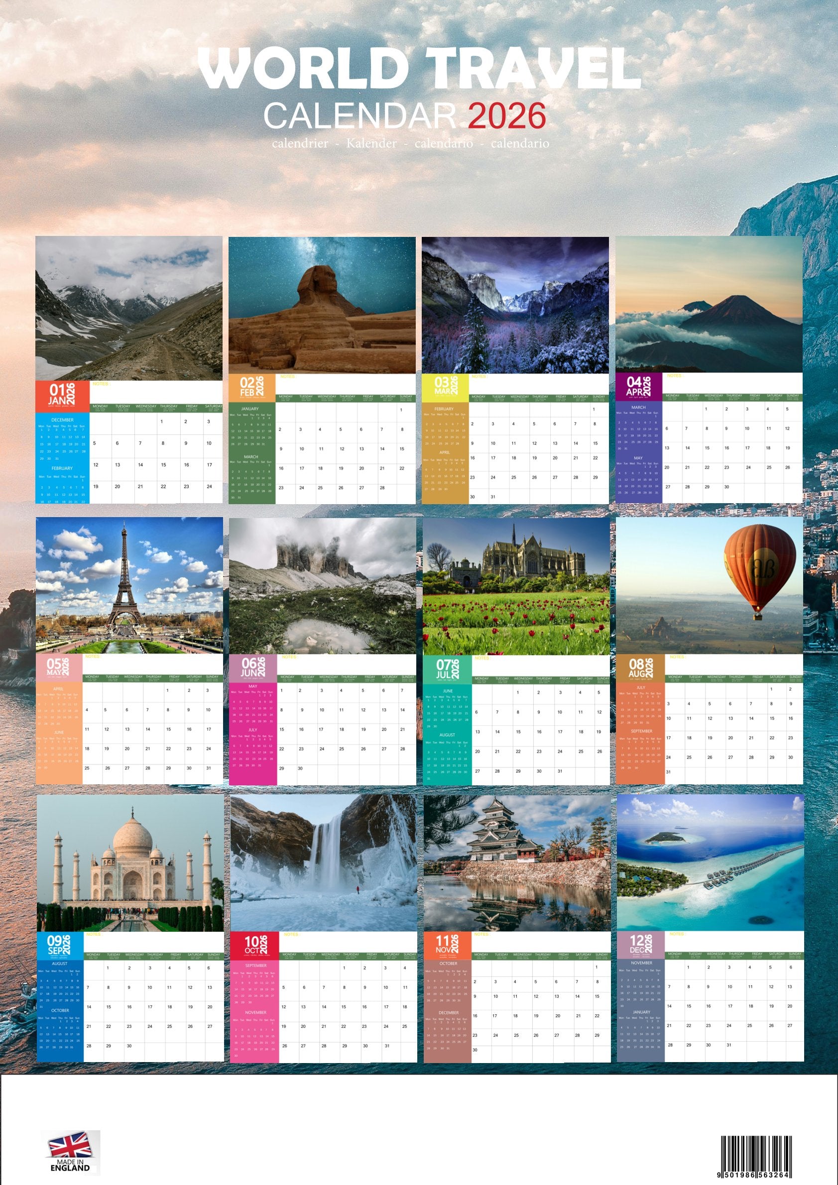 The World Travel Calendar 2026 is more than just a calendar—it’s a passport to inspiration. With stunning photography and a practical design, it brings the magic of travel into your daily routine, offering a new destination to dream about each month.